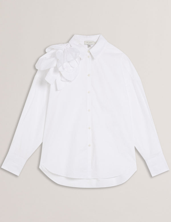 TED BAKER ALLAIOversized Corsage Detail Cotton Shirt WHITE | Sale Women’s Sale Tops