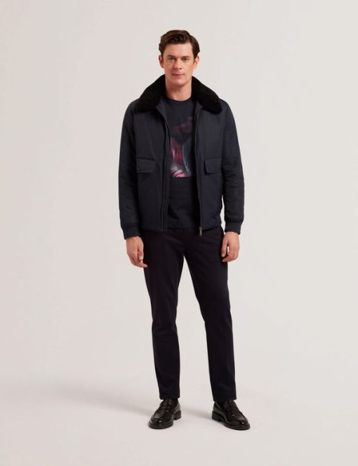 TED BAKER AVITOREZip Bomber Jacket With Removable Collar NAVY | Mens Coats & Jackets
