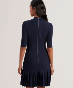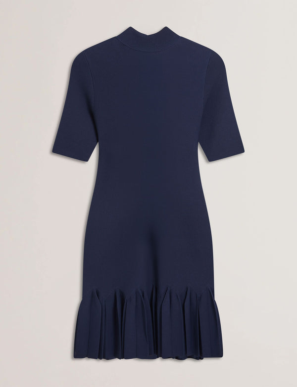 CANDDY is all business on top and party at the bottom. This bodycon mini dress starts off chic with its high neckline and half sleeves, ending with a pleated flippy hem that steals the show. Made from a stretchy knit fabric, it will be your go-to on those dressier occasions.