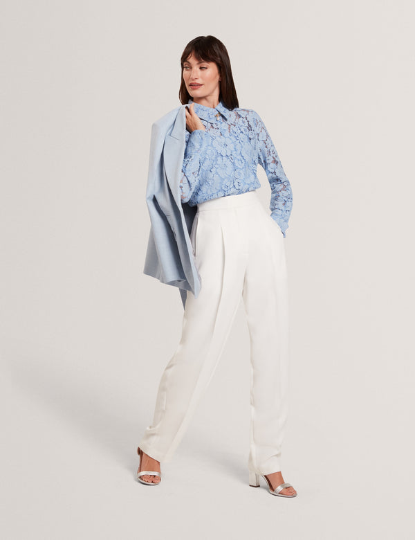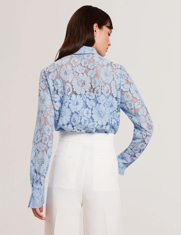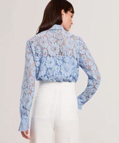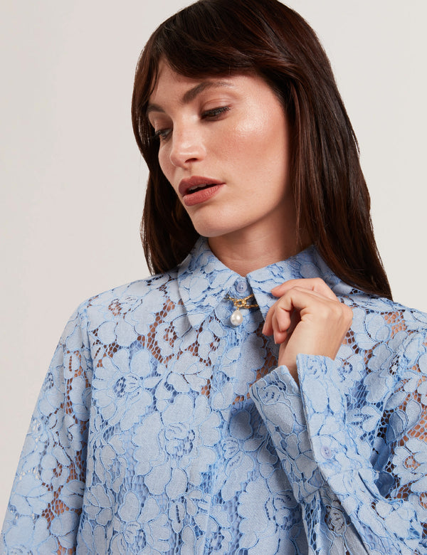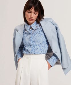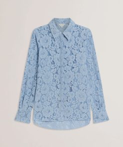 TED BAKER GENNOALace Semi-Sheer Longline Shirt LT-BLUE | New Suits & Coords