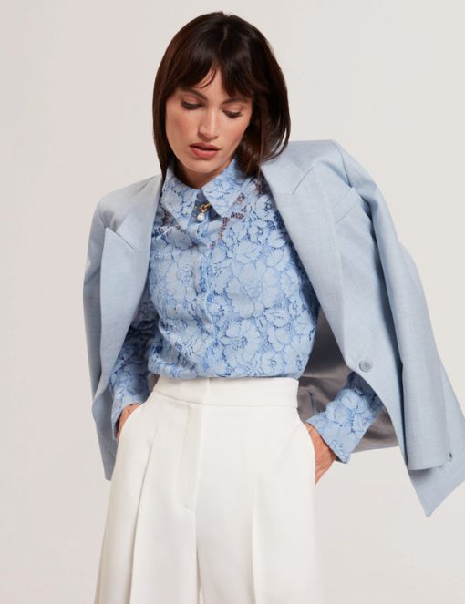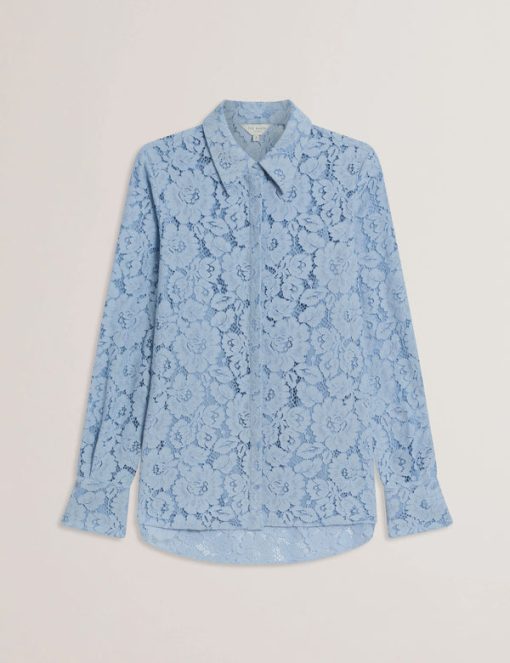 TED BAKER GENNOALace Semi-Sheer Longline Shirt LT-BLUE | New Suits & Coords