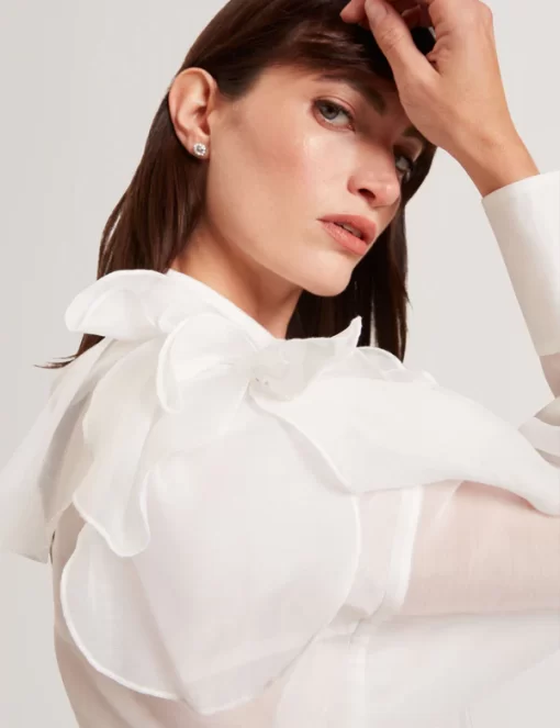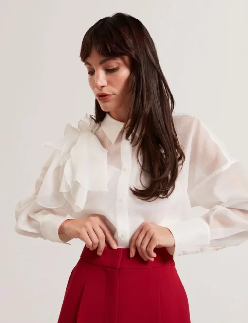 TED BAKER LANYAACorsage Detail Organza Oversized Shirt IVORY | New Tops & TShirts