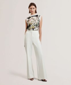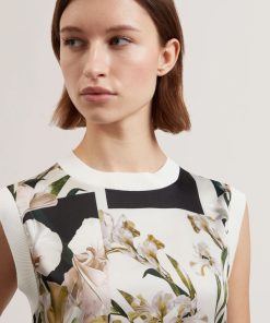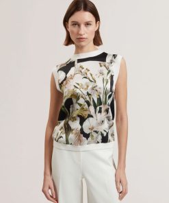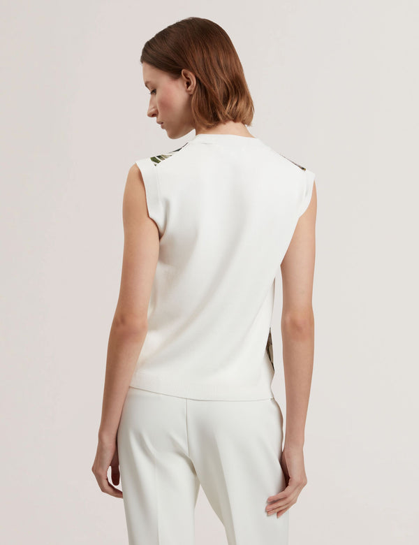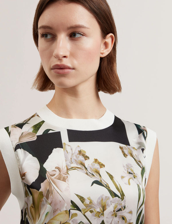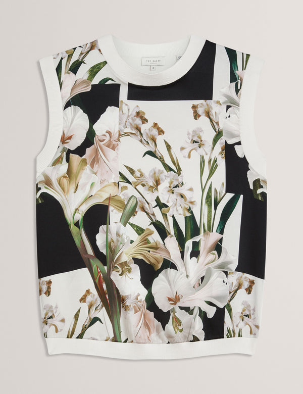 TED BAKER LIILEAFloral Print Front Boxy Knitted Tank Top IVORY | New Tops & TShirts