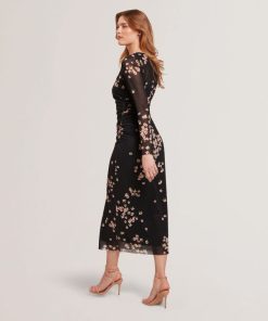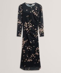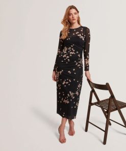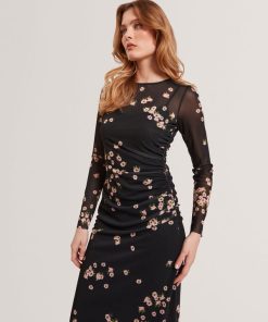TED BAKER MESH PRINTED COLUMN DRESSRich Black | New Dresses