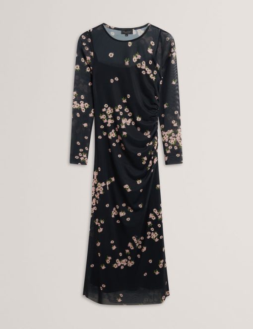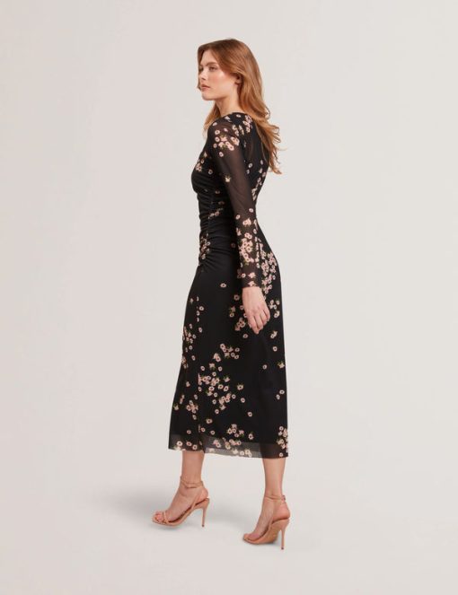 TED BAKER MESH PRINTED COLUMN DRESSRich Black | New Dresses