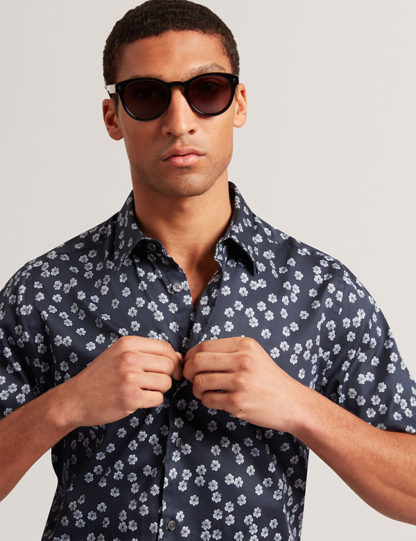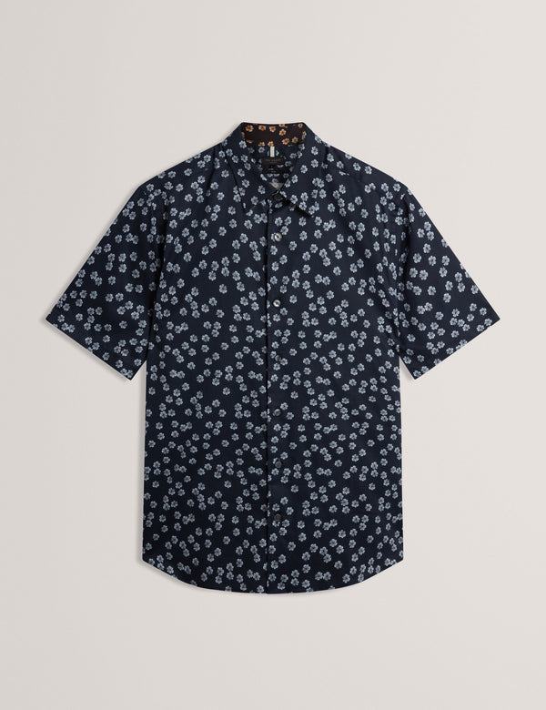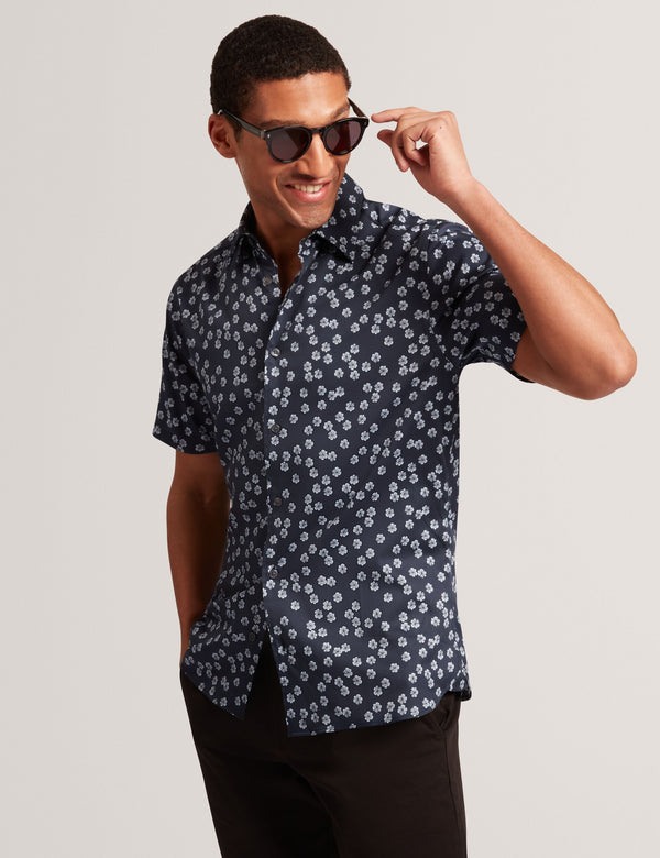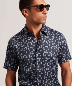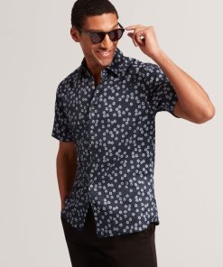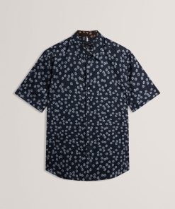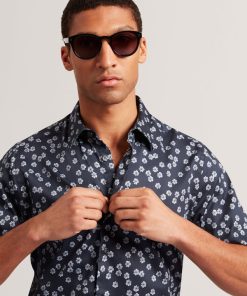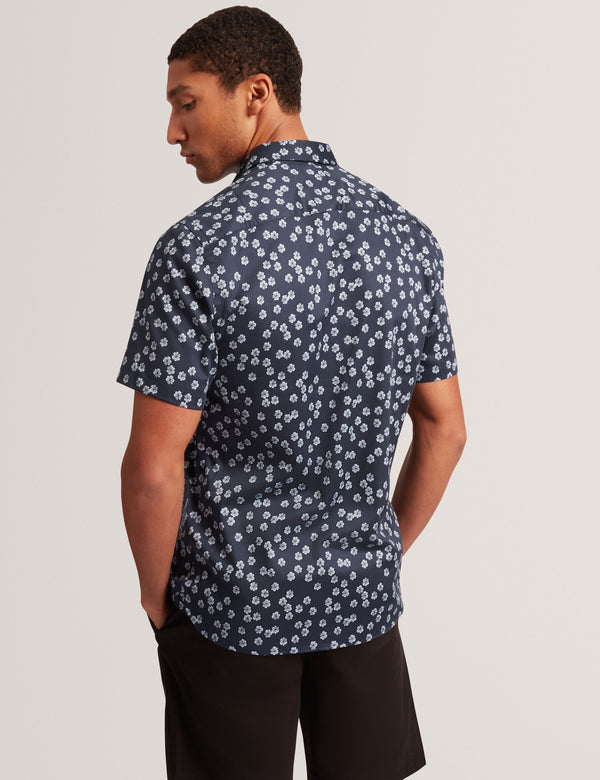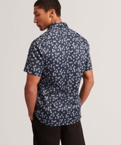 TED BAKER NIKSHO Short Sleeve Slim Ditsy Floral Shirt NAVY | Sale Men’s Sale Shirts
