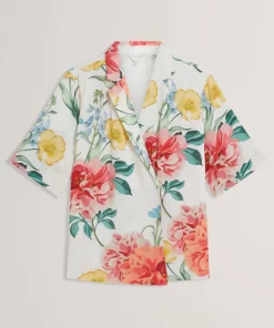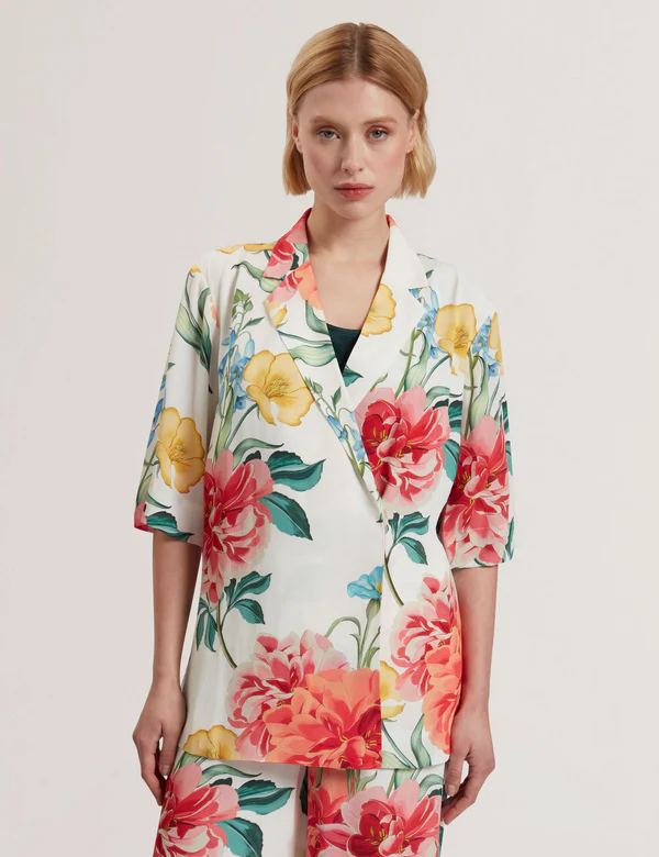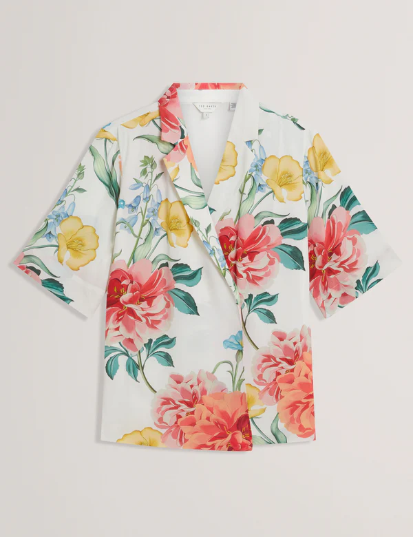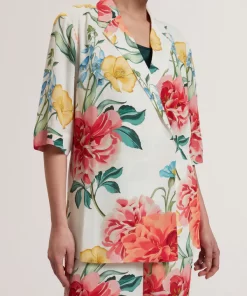 TED BAKER NYMPHAFloral Short Sleeve Oversized Blazer WHITE | New Suits & Coords
