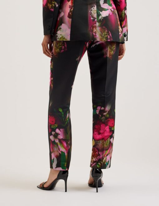 TED BAKER OKUNITTapered Leg Floral Print Tailored Trousers BLACK | New Suits & Coords