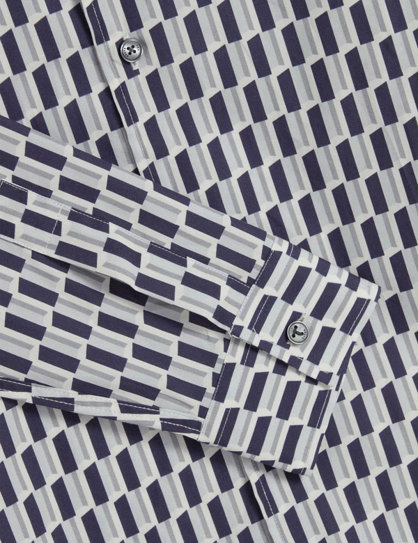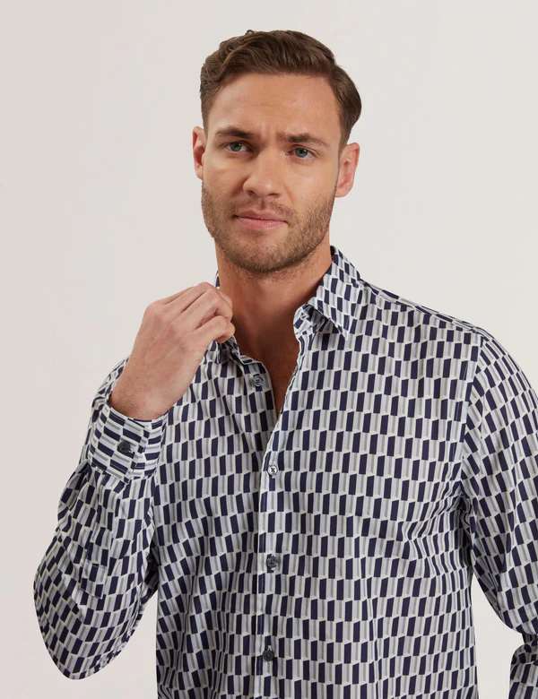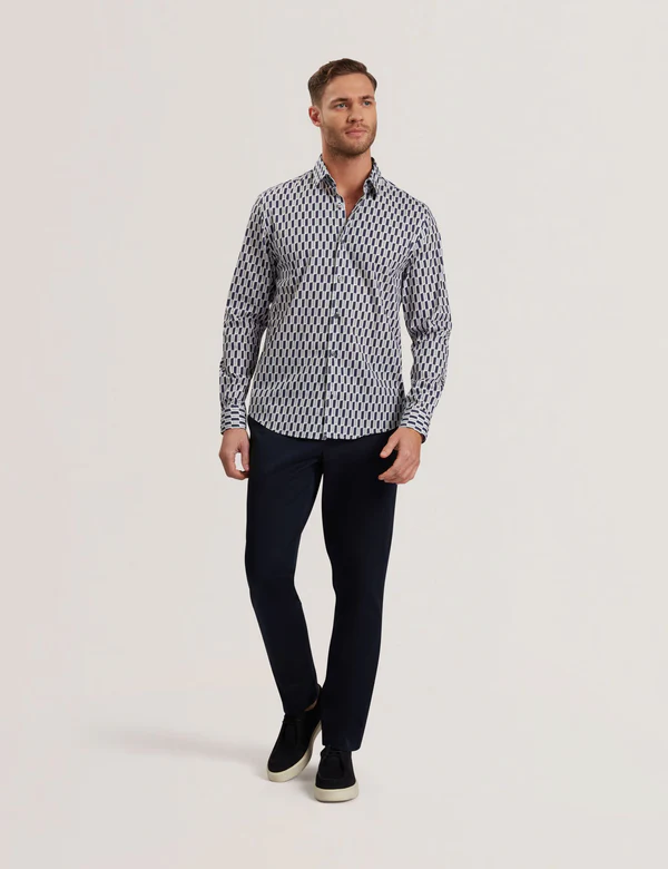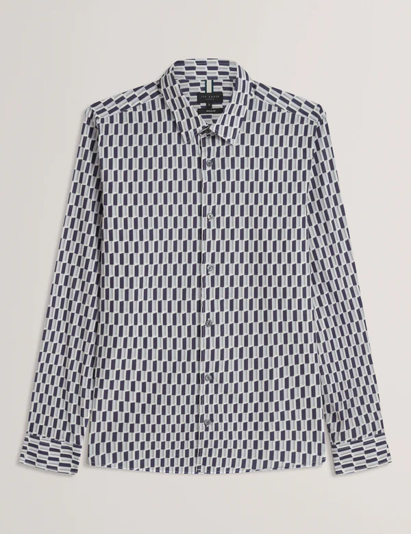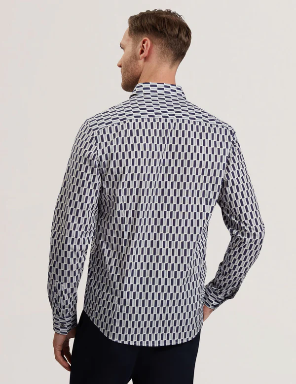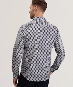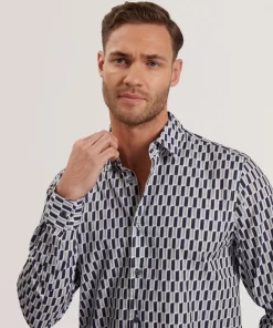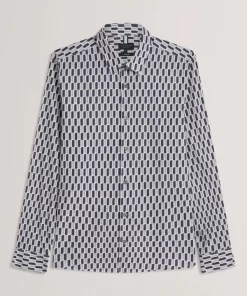 TED BAKER PEARSOGeometric Stripe Long Sleeve Cotton Shirt NAVY | Sale Men’s Sale Shirts
