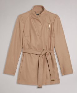 TED BAKER ROSESSShort Belted Wool Wrap Coat CAMEL | Sale Women’s Sale Jackets