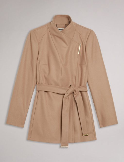 TED BAKER ROSESSShort Belted Wool Wrap Coat CAMEL | Sale Women’s Sale Jackets