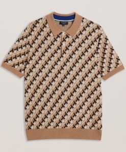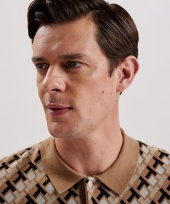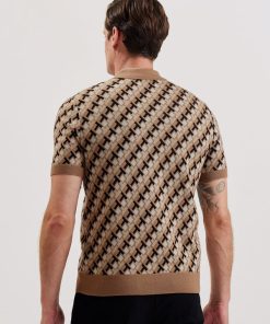 TED BAKER SEFERRYInterlocking T Jacquard Knitted Polo Shirt BROWN | Sale Men’s Sale Tops