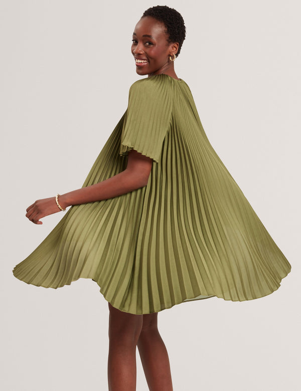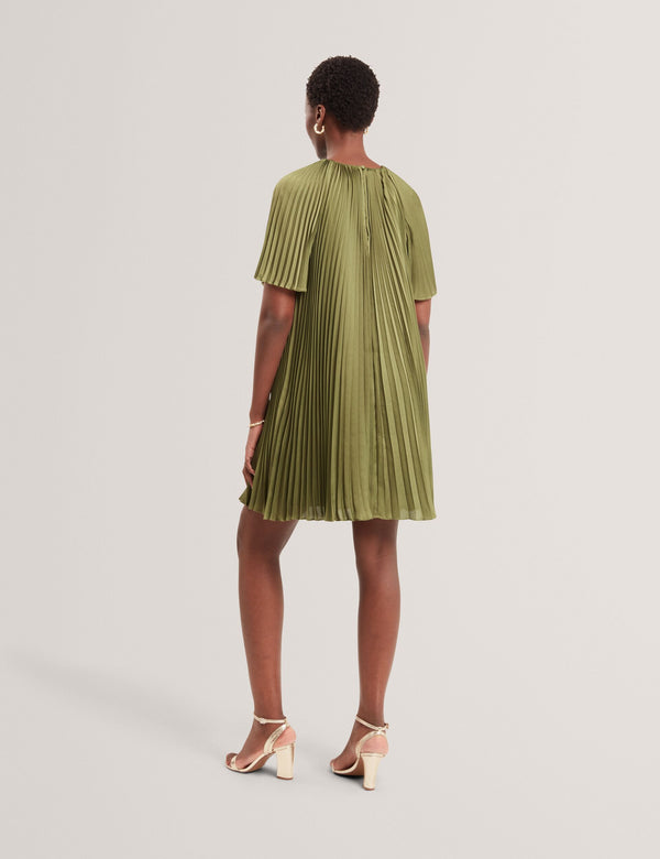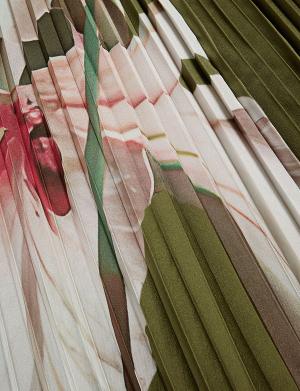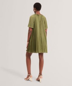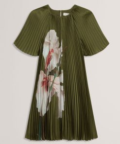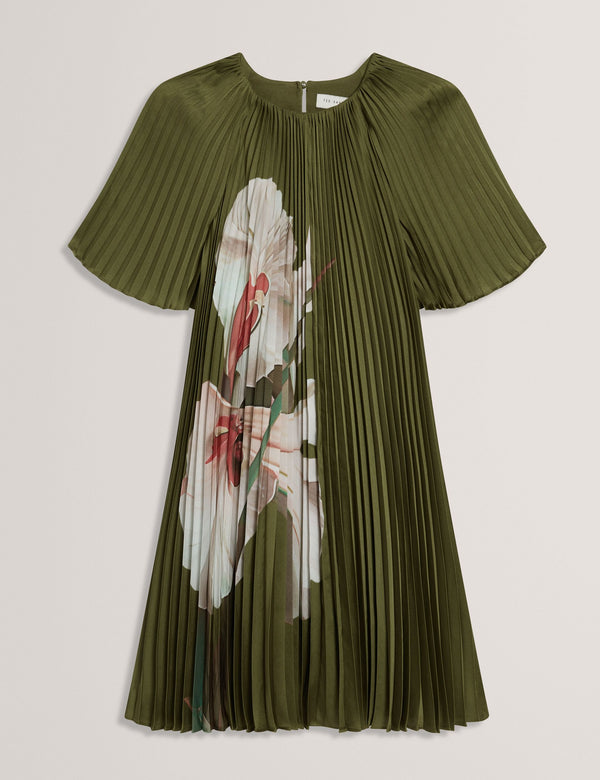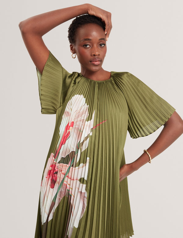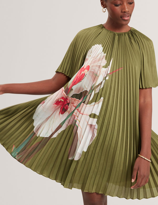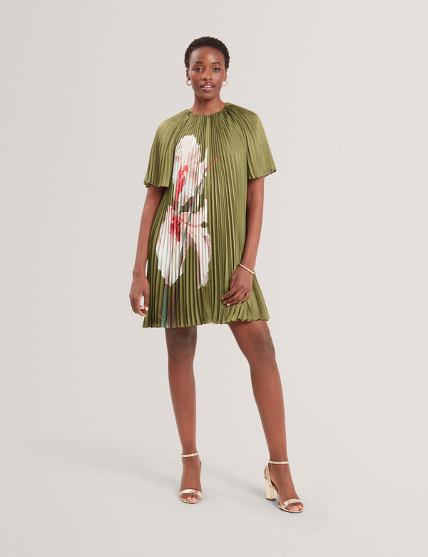 TED BAKER VINLAAFloral Graphic Pleated Satin Mini Dress GREEN | Sale Women’s Sale Dresses